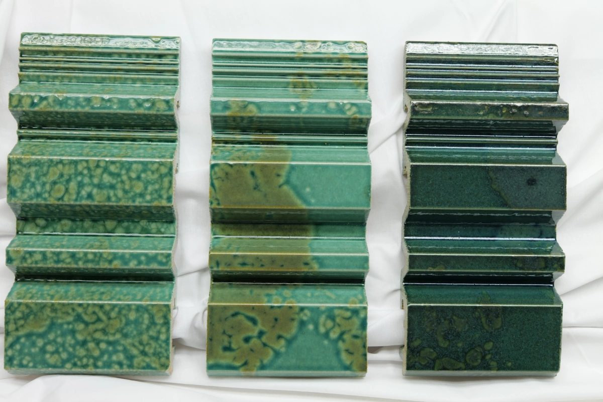 Зеленовато-салатный оттенок, создаваемый густой глазурью ручной работы.