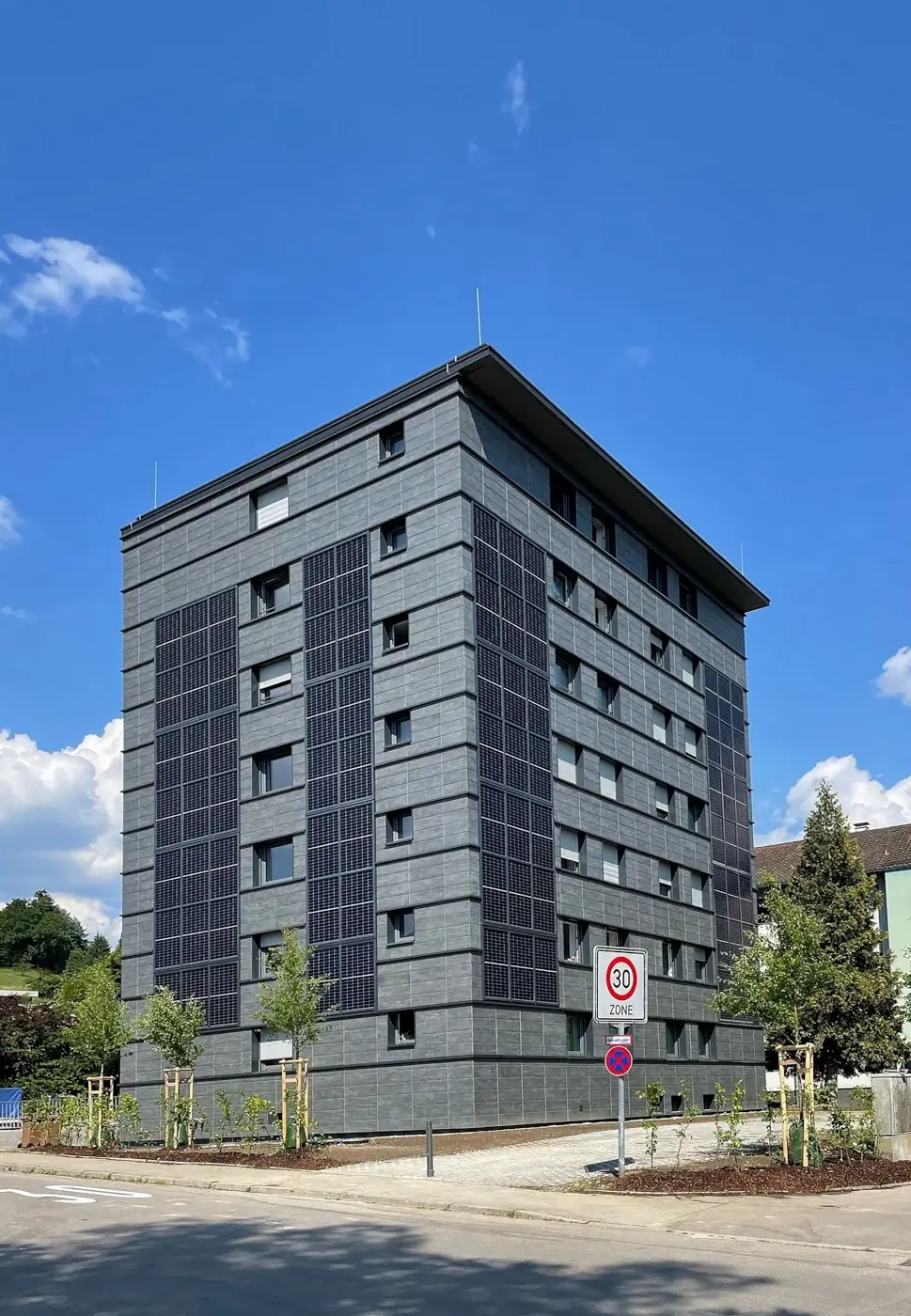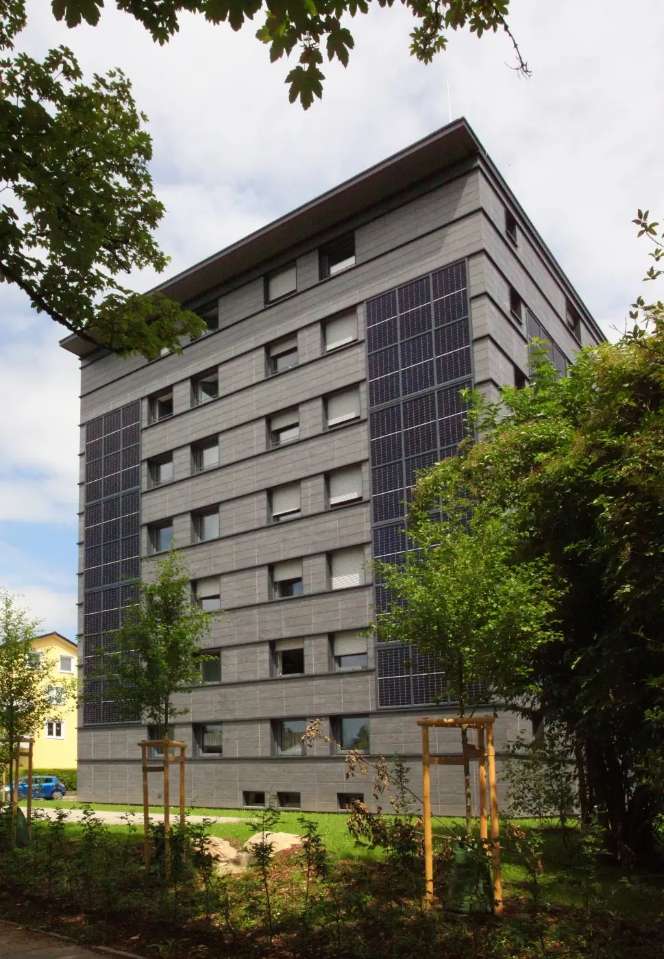 Außergewöhnliche Modernisierung im Bereich des sozialen Wohnungsbaus: In Lindau am Bodensee wurde jetzt ein in die Jahre gekommenes Wohnheim umfassend renoviert und erweitert. Die moderne Fassade besteht dabei aus im Wechsel angeordneten Tonality-Keramik- und Photovoltaikelementen. Durch die Gebäudeerweiterung und die neue Fassade wirkt das Gebäude jetzt klar strukturiert, gepflegt und modern. Das Besondere dabei: In einem intensiven Abstimmungsprozess erarbeiteten die Bauherrin GWG Lindauer Wohnungsgesellschaft mbH und Leipfinger-Bader die besondere Schieferoptik der Keramikelemente, die dann individuell für dieses Projekt produziert wurden.