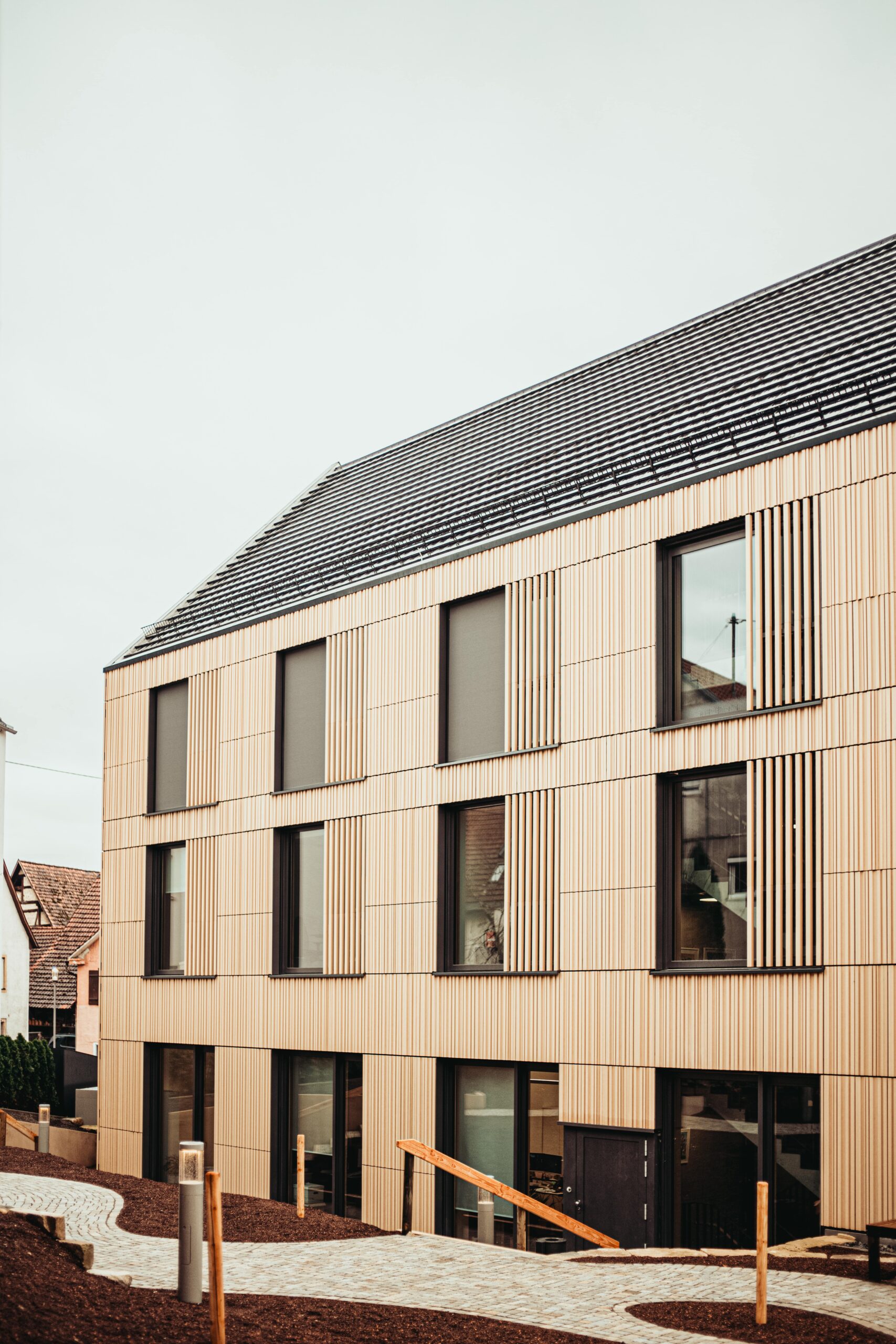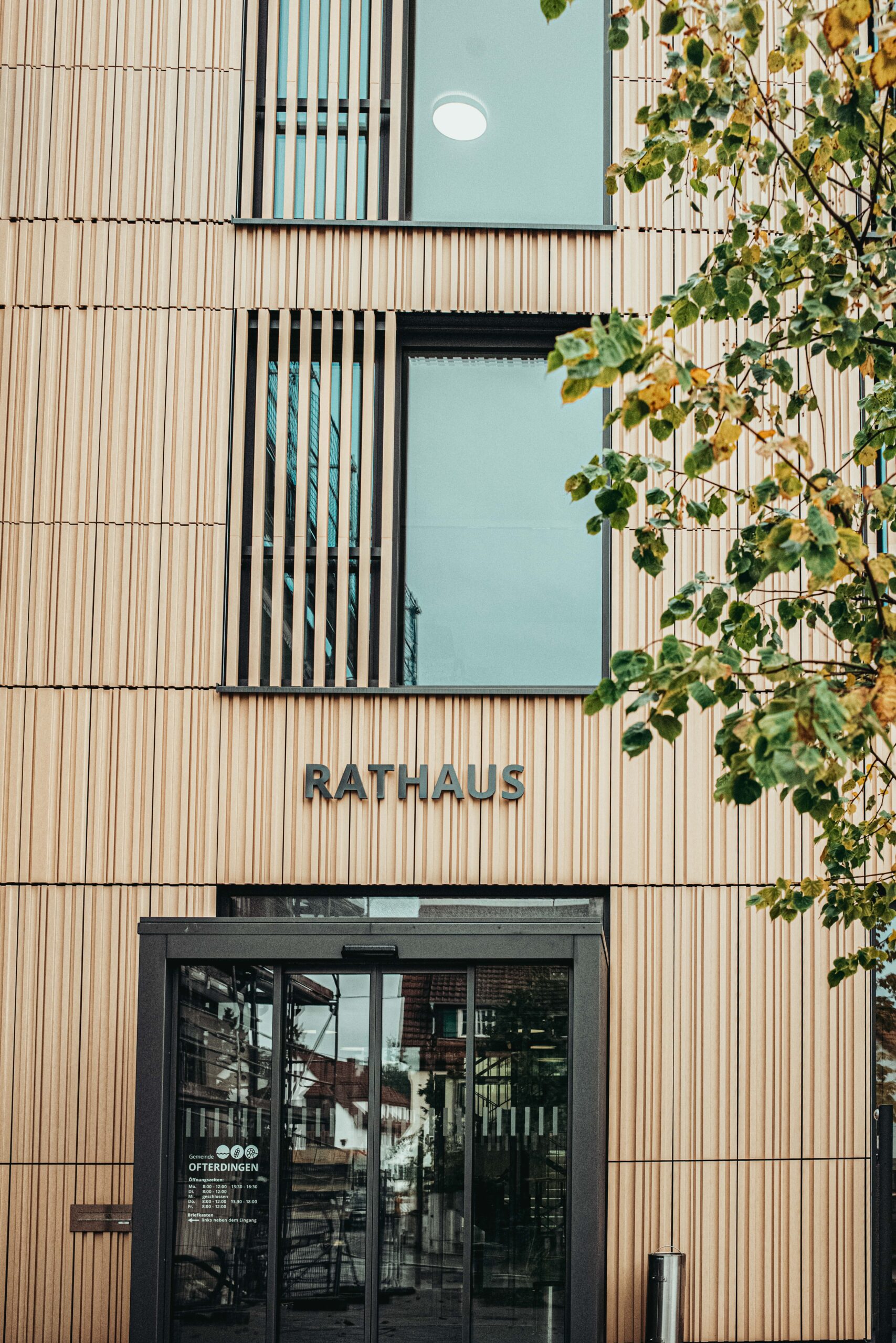 Расширение исторического здания ратуши в Офтердингене умело сочетает в себе традиции и современную архитектуру благодаря инновационной керамической фасаде Tonality. В гармоничном оттенке «крем» подвесная фасадная система с вентиляцией облегает деревянную каркасную конструкцию и создает динамичную игру света и тени благодаря своим профилированным рельефным плитам. Особенно характерны 4000 погонных метров полупрозрачных керамических багетов размером 60 × 60 миллиметров, которые были размещены в виде квадратных элементов перед окнами и усиливают архитектурный эффект. Однослойная керамика впечатляет не только своей эстетикой, но и небольшим весом, превосходными противопожарными свойствами и исключительной долговечностью — это экологичное решение, придающее административному зданию естественный вид.