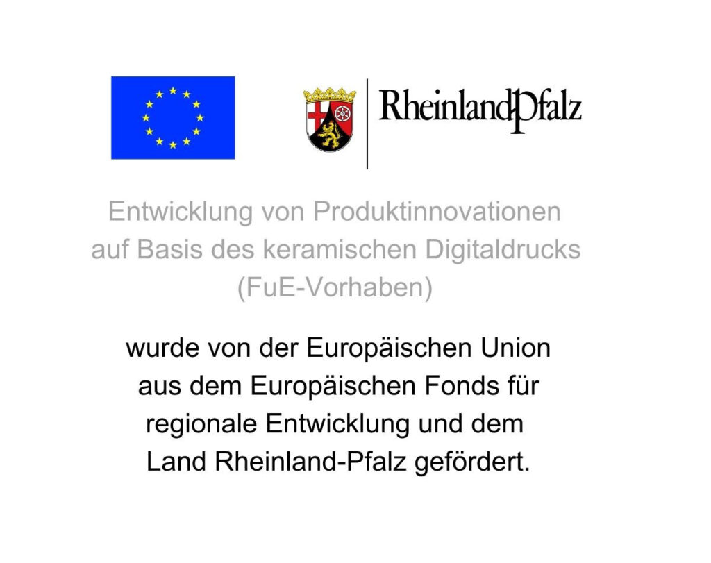 Wir freuen uns über die kürzlich erhaltene Förderzusage durch die Investitions- und Strukturbank Rheinland-Pfalz (ISB) für unser Vorhaben «Entwicklung von Produktinnovationen auf Basis des keramischen Digitaldrucks».